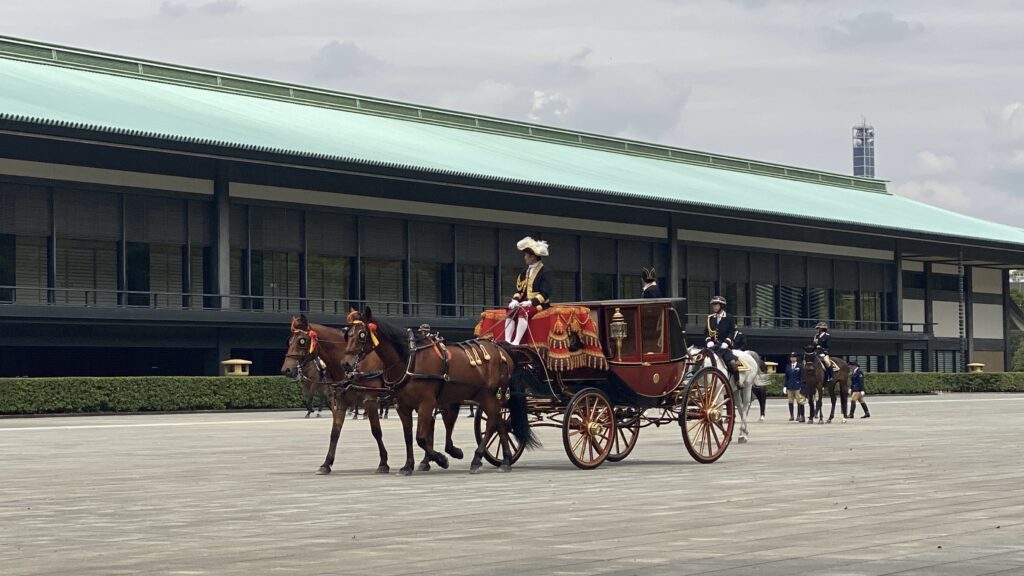 On the day we visited, there was a formal greeting of new ambassadors, so we had the privilege of seeing them riding in horse-drawn carriages into the Imperial Palace itself. All the horses used in the Imperial Palace, of which there are over 30, are taken care of in stables there.